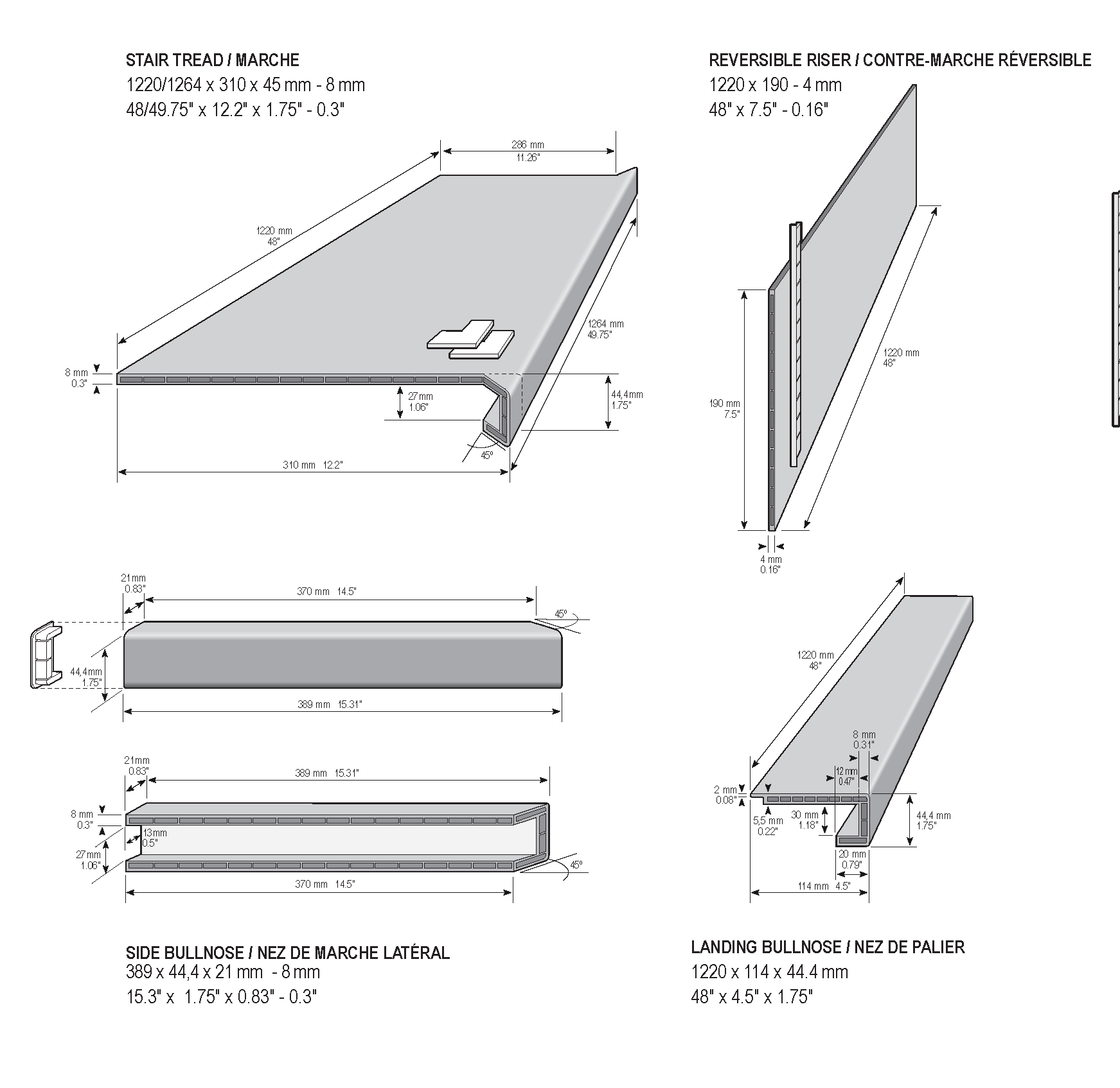 2 x Treads 48” × 12.2” (1220 × 310 mm)